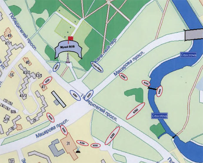 В вечернее время, перед концертом и салютом, дислокация пропускных пунктов несколько изменится. Пройти проверку безопасности минчане и гости города смогут в точках, обозначенных на карте: